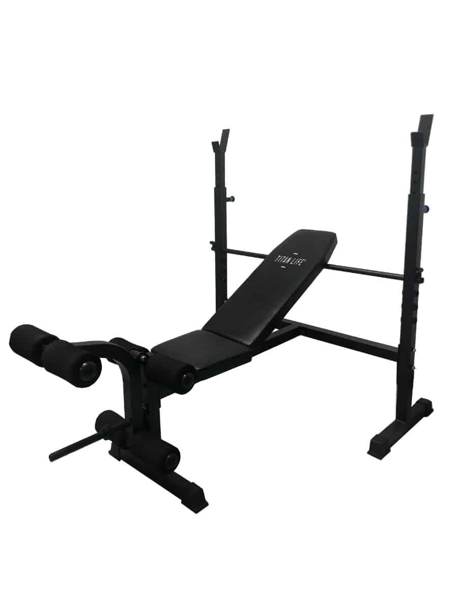 TITAN LIFE Essential Bench II Justerbar Bænkpres er en multi træningsbænk, hvor du kan træne flere muskelgrupper. Bænken har en justerbar ryg fra 110 – 126 cm. og der er to holdere til din vægtstang, som gør at stangen bliver på sin plads. Puderne er lave