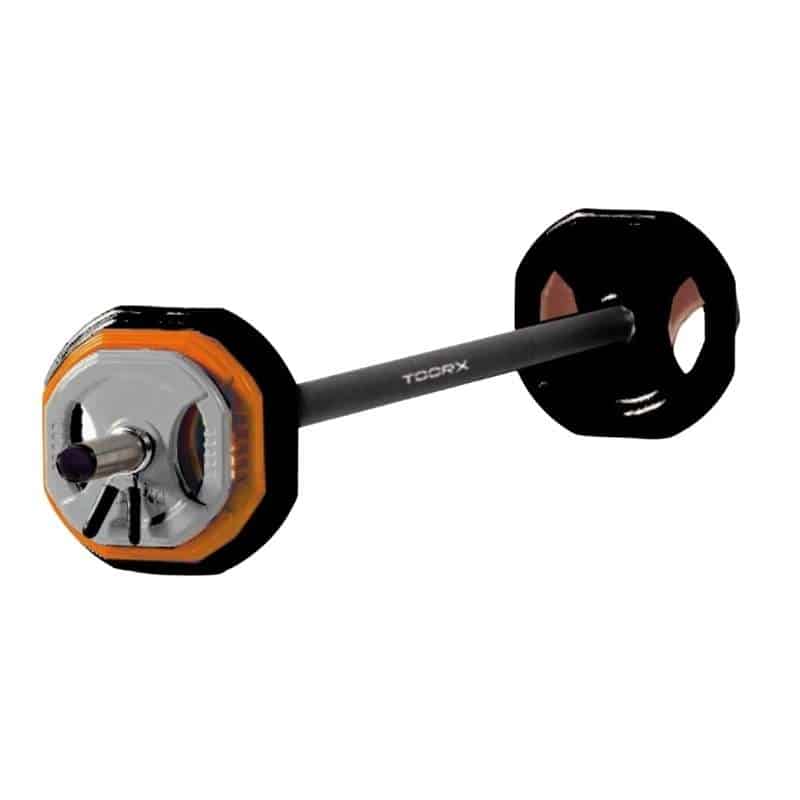 â Komplett 20 kg sæt: 2×5 kg, 2×2,5 kg og 2×1,25 kg.â Hul vægtstang med skumgreb og sikre klips.â Ideelt til Bodypump og alsidig fuldkropstræning.